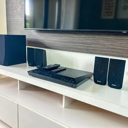 The rooms at the Apt Aconchegante No Malawi Porto de Galinhas include climate control, as well as media facilities like a multi-channel television.